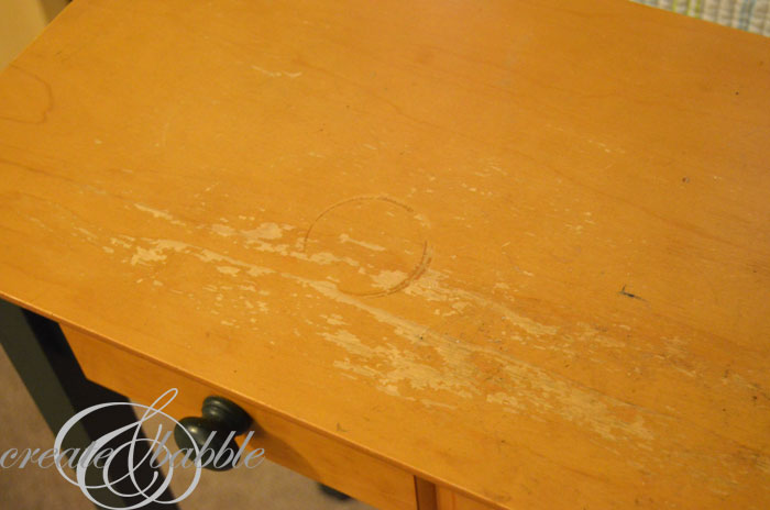 This photo shows the scratched, water-ringed top. Lovely, huh?