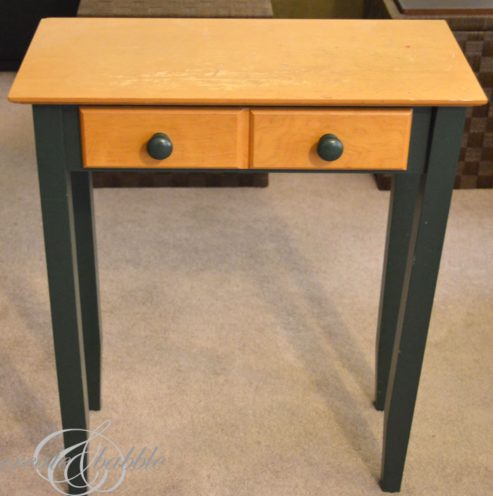 This old table has been my bedside table forever. I don’t know what took me so long to paint it. I guess because my bedroom makeover has taken a backseat to the kitchen remodel (that is still in progress….ugh). I finally got tired of looking at it.