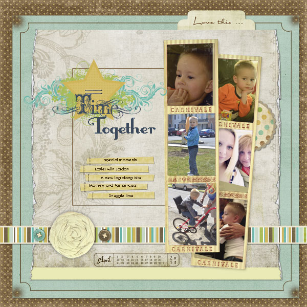 Making this page satisfied my crafty need to “make something” and I didn’t need card stock, a paper cutter, adhesive, stickers, pens, buttons, ribbon, etc. Just my computer! I am now a fan of digital scrapbooking!