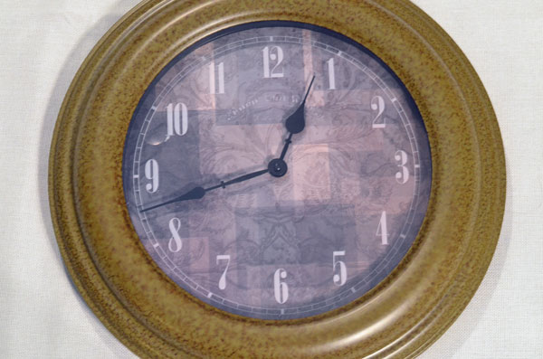 I have to say it. This is an ugly clock. I didn’t think so when I bought it. It was an impulse buy…I needed or wanted a clock for the kitchen wall and thought it would look good and the price was right. But as soon as I brought that clock home, I knew it was a mistake. But it hung in my kitchen for a year or so until I finally decided to do something about it.