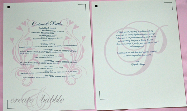 For the back of the program, I used their initial monogram and added the bride and groom’s message to their guests.