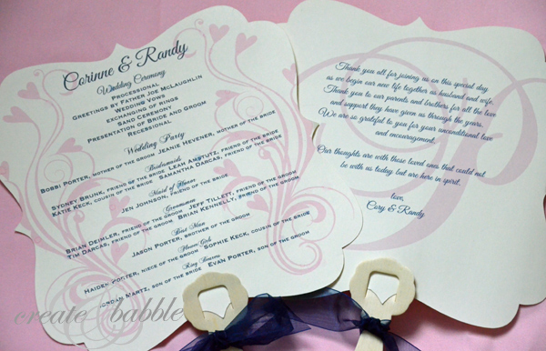 Since the wedding ceremony was being held outdoors in August, we knew there was a good chance that it could be hot, so we thought a fan-type program would be a good idea. As it turned out, it wasn’t too hot, but the fan programs added a pretty, personalized touch!