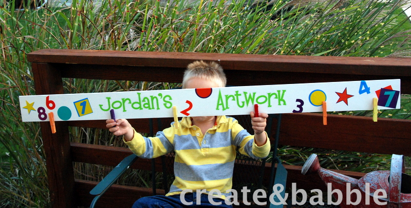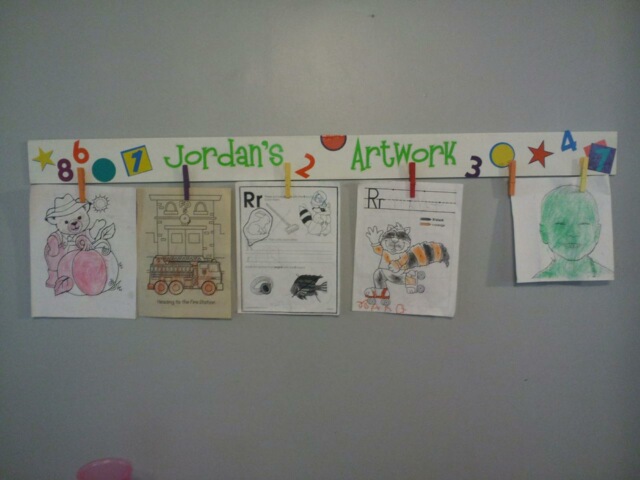 My daughter told me recently how she is running out of room on her refrigerator to display all of the beautiful masterpieces that my grandson brings home from preschool. So what’s a crafty grandmother to do? Why she searches for ideas on Pinterest of course and then makes a Child’s Artwork Display! The images there inspired me to create this: