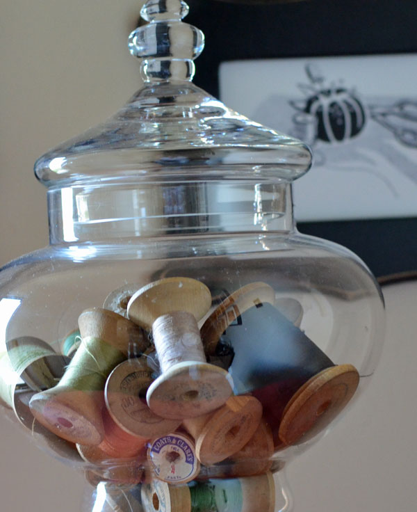 I think they go perfectly with the jar of antique wooden spools of thread.
