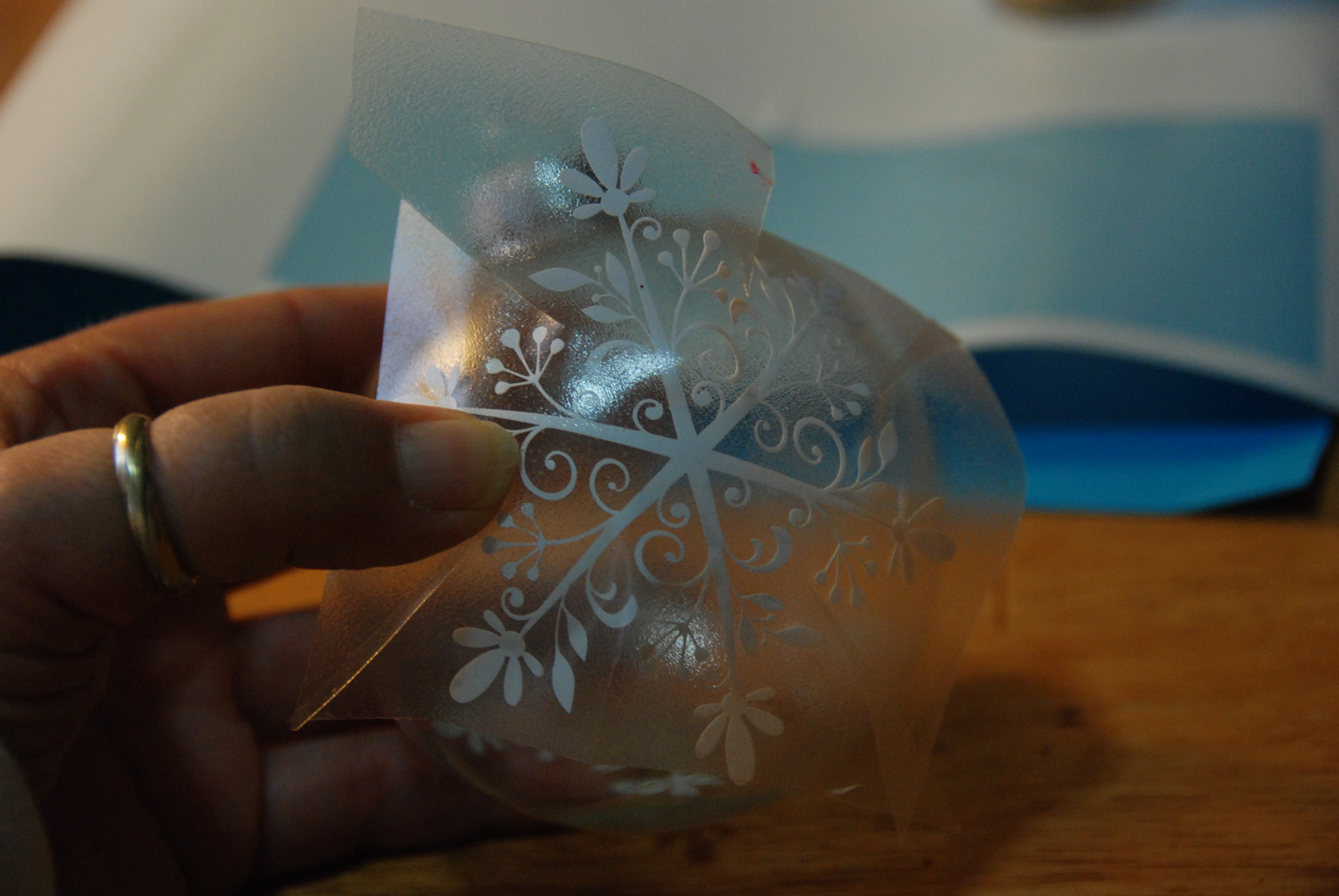 The snowflake design really caught my eyes while I was having a quick coffee break. It’s cool to see how simple floor finish and glitter can make such stunning ornaments