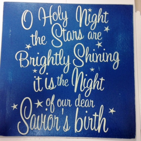 This design was being shared on a Silhouette Cameo users facebook page. I immediately fell in love with it! I cut it out of vinyl, then applied the vinyl on a painted 12 x 12″ wooden board that I found at Michaels. Next I spray painted the whole thing blue, removed the vinyl and sanded it all down to give it a more shabby look that Brandi says she likes. I hope she likes it!