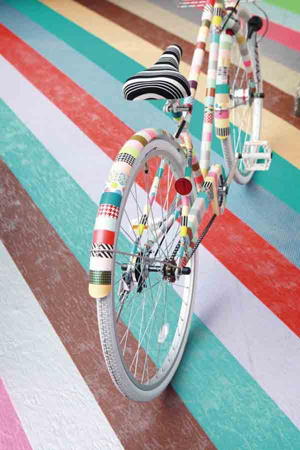 The wash tape look is pretty cute. My thoughts: I like the washi tape look for city or neighborhood riding. But I like the rugged look of a plain mountain bike for serious riding.