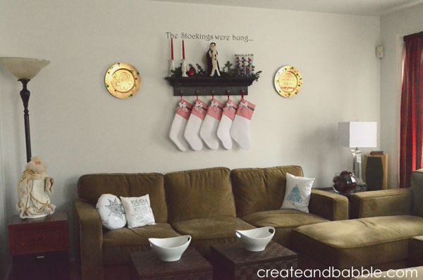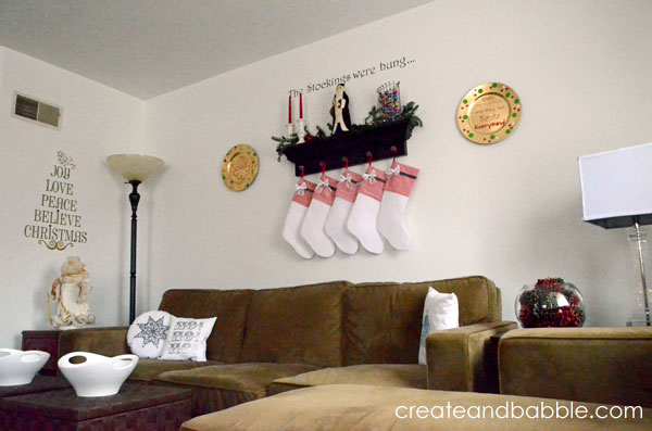 I love your “mantle”. A couple of years ago a friend of mine made some similar stocking mantles for her married children that didn’t have fireplaces. Every home needs a mantle for stockings and now you have one. 🙂 Way to go.