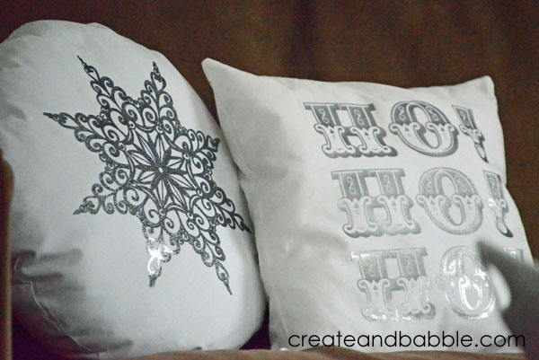 Oh, and the pillows I made, too. Again with help from the Cameo. I cut out the shapes and letters out of heat transfer vinyl and ironed them onto simple pillow covers.
