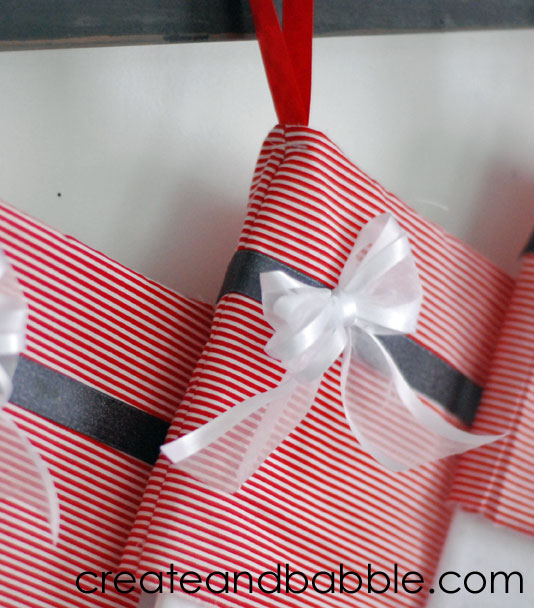 Since this household is made up of a blended family, we have quite the collection of Christmas Stockings. Unmatched Christmas Stockings. Which is fine, except I wanted my “mantel” to look pretty with matching stockings. So as a compromise for the sentimental among us, we will still hang the old mismatched stockings in their usual place: out of sight in the hall on the bannister. I made pretty, matching stockings and these will be mine ; )